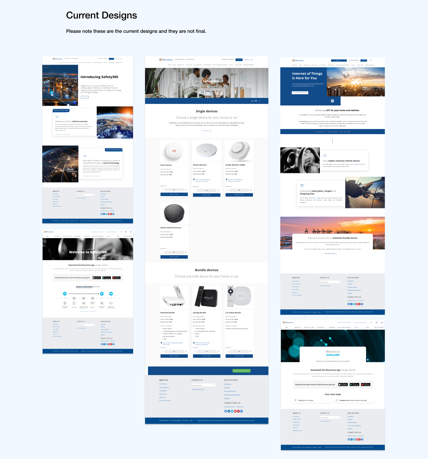 The goal of Safety360 was to create an end-to-end usable web journey that could allow Discovery’s existing customer base, and potential new customers to purchase IoT devices for their homes or vehicles. These include standard smoke detectors, smoke detectors with air quality monitoring features, panic devices and stolen vehicle recovery devices.