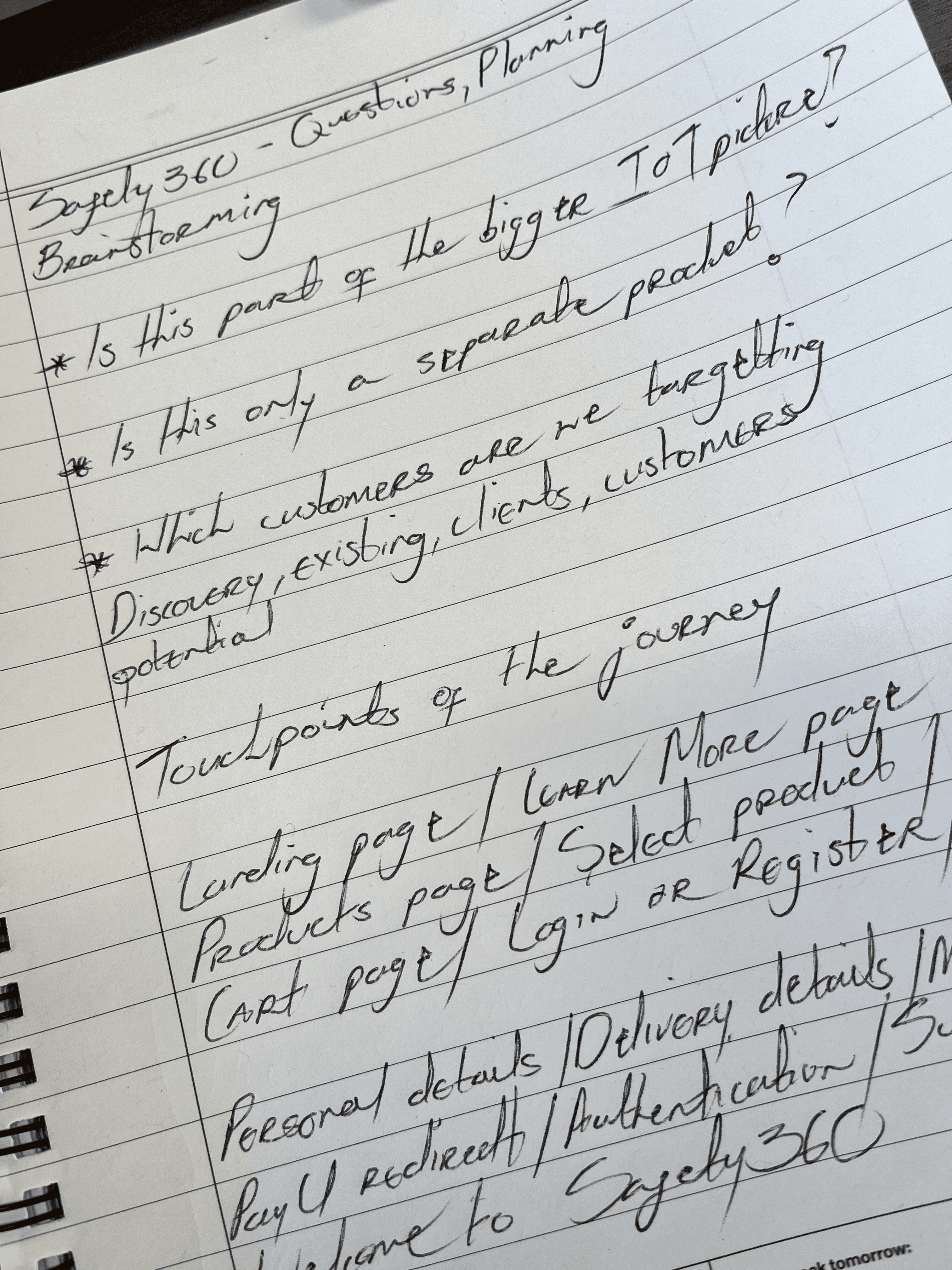 During my design process for this project, I crafted some wireframes and sketched down some notes to properly visualise the end-to-end journey.