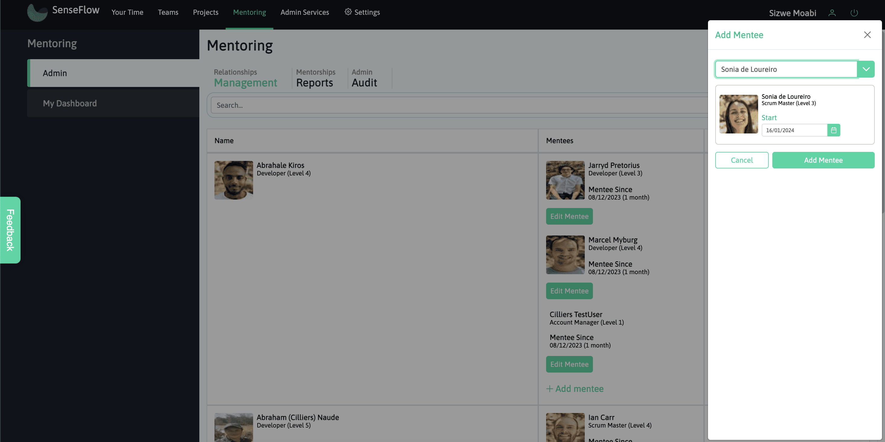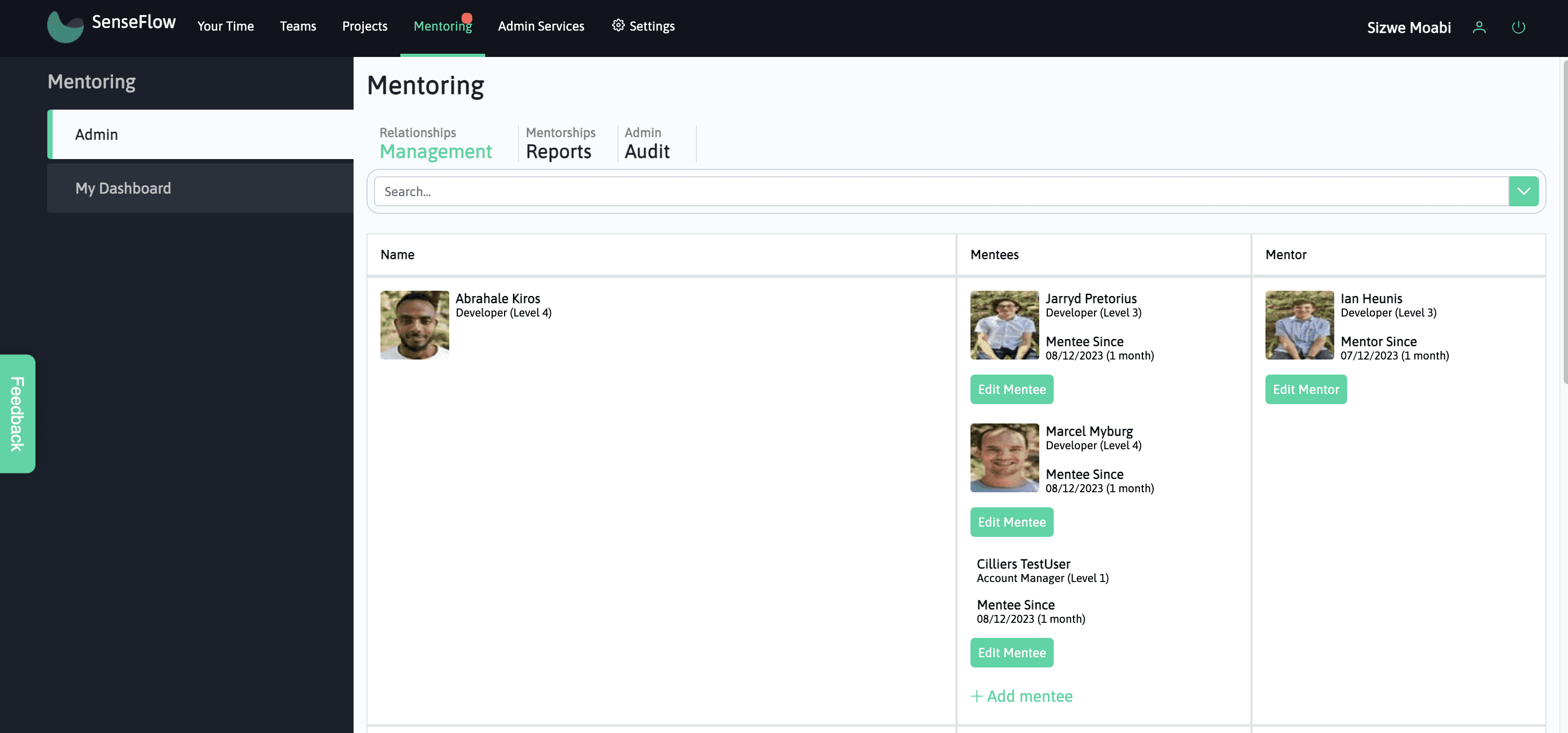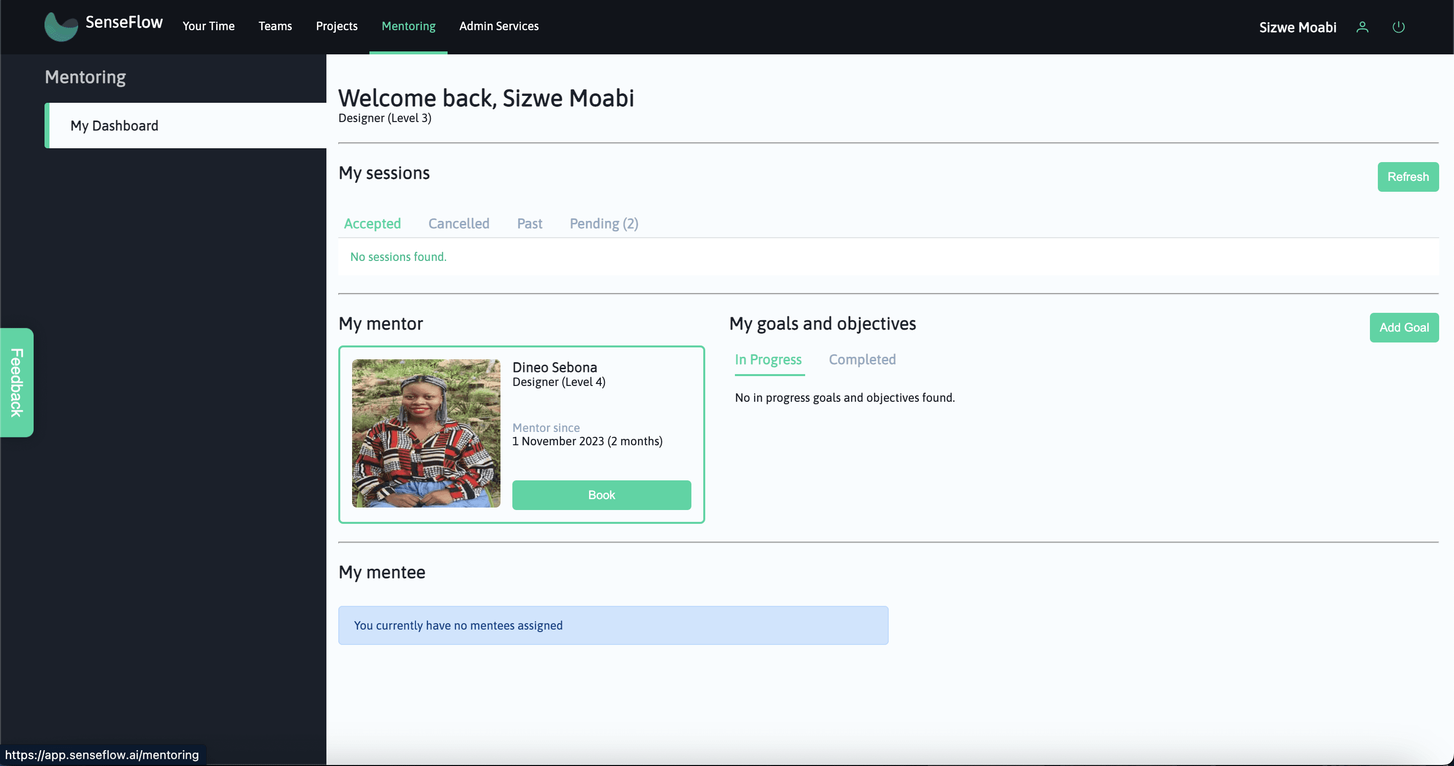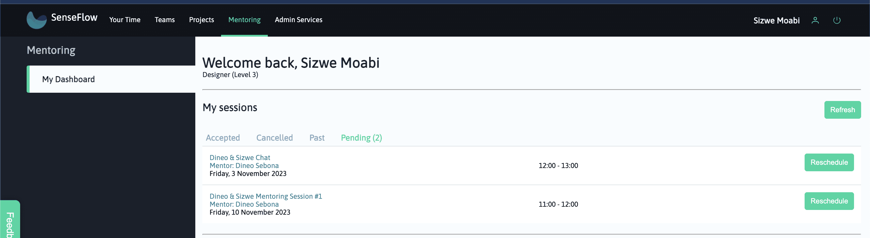 The biggest challenge I faced as a designer on SenseFlow was the mentoring feature. This was a request from the business to incorporate mentorship onto the SenseFlow platform. The mentorship pilot program was created to welcome the 2023 graduates into the company, support their growth and expose them to seniors. The pilot program of mentoring was successful and this made sure that Retro Rabbit could then move onto the next step which was a company wide rollout of mentorship.