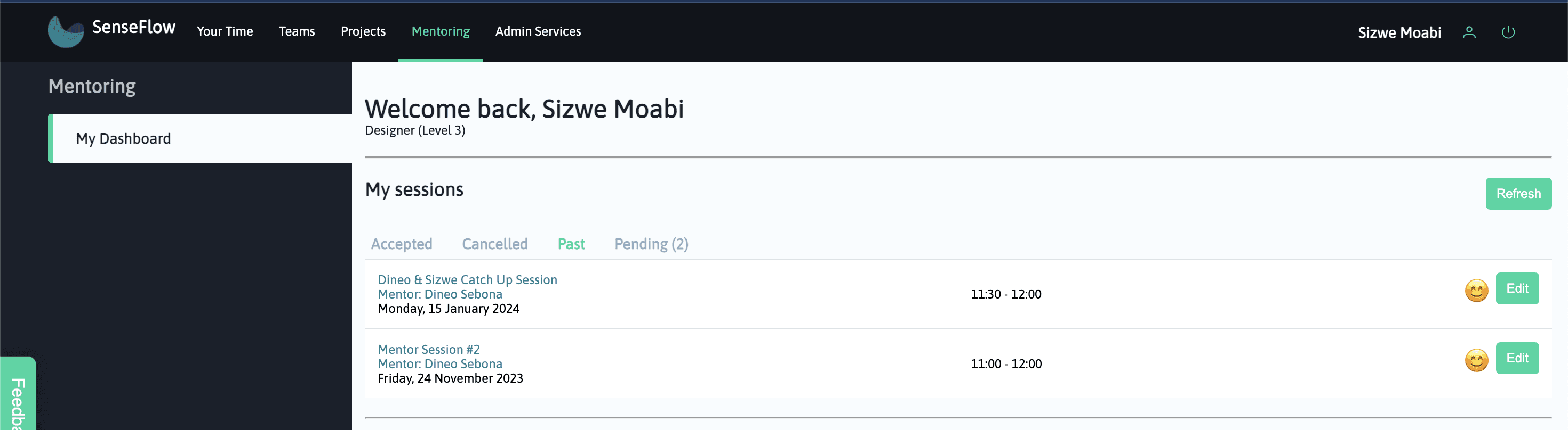 Mentoring on SenseFlow is live and has been deployed by the development team. Our next steps to take will include working on the next version of Mentoring which includes implementing layout changes, separating content, adding more colours and designing extra improvements.