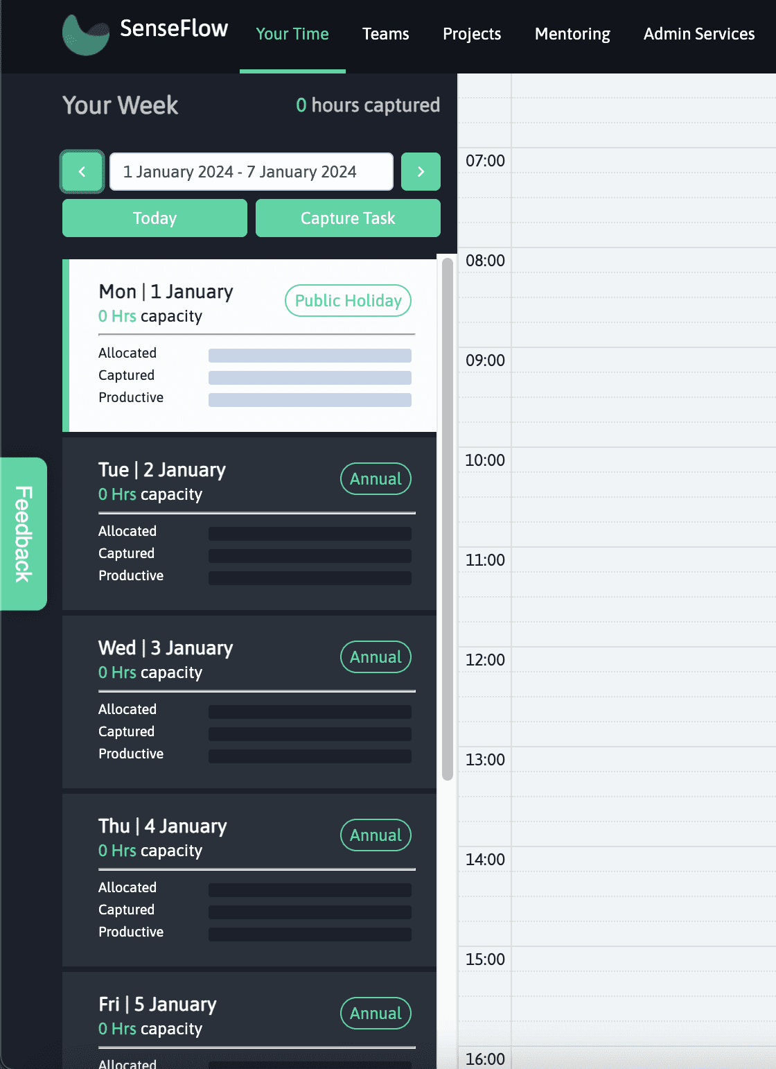 SenseFlow is Retro Rabbit’s internal timesheet recording software meant for employees. I was a solo designer on the project from May to June, and was later joined by 2 other designers as the scope of the project grew. With SenseFlow, employees can track their time, seniors can manage their teams and client account managers can view utilisation and how productive employees are on a day to day basis.